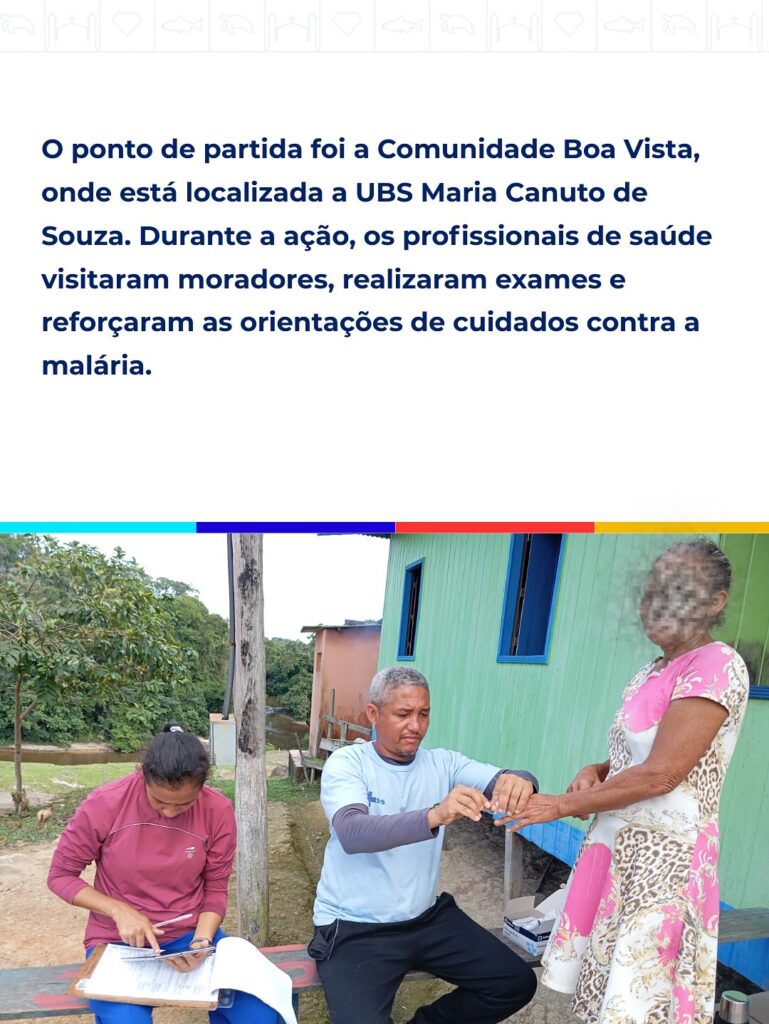 Entre os dias 15 e 18 de agosto, a Prefeitura de Itamarati realizou uma grande mobilização contra a malária no Igarapé Canaã. Foram quatro dias de ação com busca ativa e testes rápidos nas comunidades Boa Vista, Dona Nenê, Santo Antônio e Buriti.![]()