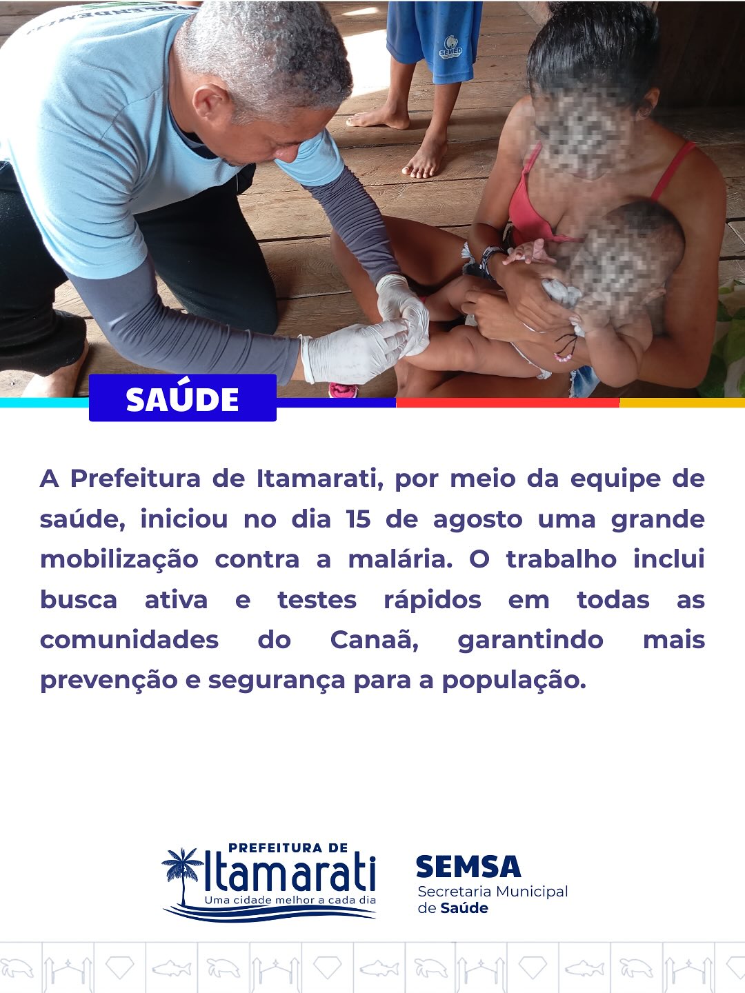 Entre os dias 15 e 18 de agosto, a Prefeitura de Itamarati realizou uma grande mobilização contra a malária no Igarapé Canaã. Foram quatro dias de ação com busca ativa e testes rápidos nas comunidades Boa Vista, Dona Nenê, Santo Antônio e Buriti.![]()